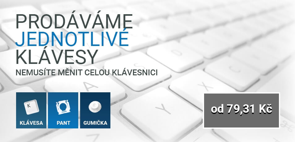 www.klavesydoklavesnic.cz je internetový obchod, který se specializuje na prodej jednotlivých kláves do počítačových klávesnic, fixačních prvků pod klávesy, trackpointů a jiného zboží, díky kterému budete moci vrátit svá zařízení do původního (kompletního) stavu. V nabídce najdete tlačítka do laptopů, tlačítka do notebooku, tlačítka do netbooku, tlačítka do palmtopu, tlačítka do tabletu, tlačítka do stolního počítače, tlačítka do drátove i bezdrátové klávesnice. Pokud jsou Vaše klávesy v klávesnici poškozeny nebo Vám nějaké klávesy chybí, tak svůj problém vyřešíte díky naší nabídce.
