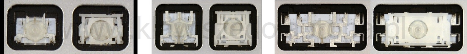 - U většiny klávesnic, které vypadají zvenku identicky, byly použity různé typy upevnění pod klávesami.