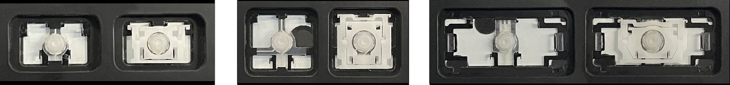 - U většiny klávesnic, které vypadají zvenku identicky, byly použity různé typy upevnění pod klávesami.