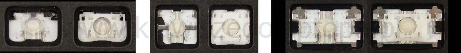 - U většiny klávesnic, které vypadají zvenku identicky, byly použity různé typy upevnění pod klávesami.