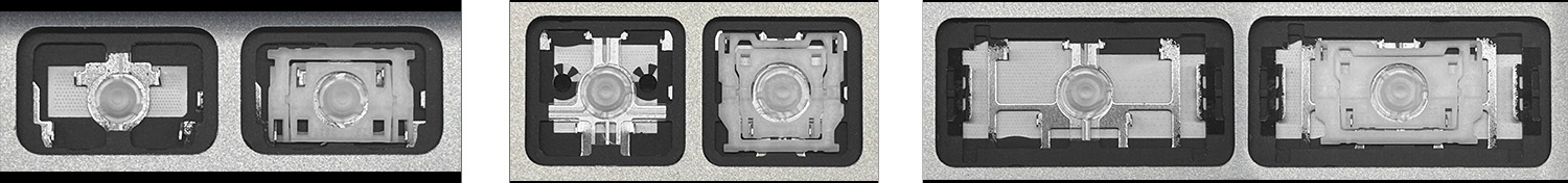 - U většiny klávesnic, které vypadají zvenku identicky, byly použity různé typy upevnění pod klávesami.