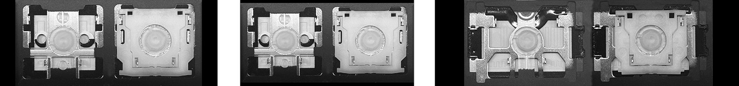- U většiny klávesnic, které vypadají zvenku identicky, byly použity různé typy upevnění pod klávesami.