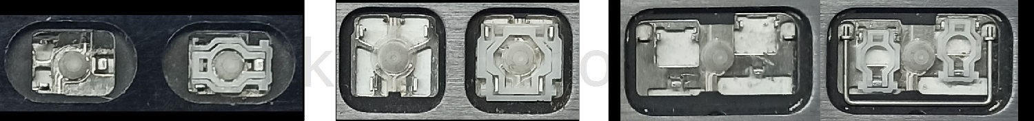 - U většiny klávesnic, které vypadají zvenku identicky, byly použity různé typy upevnění pod klávesami.