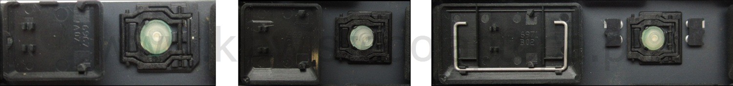 - U většiny klávesnic, které vypadají zvenku identicky, byly použity různé typy upevnění pod klávesami.