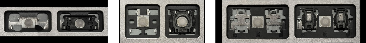 - U většiny klávesnic, které vypadají zvenku identicky, byly použity různé typy upevnění pod klávesami.