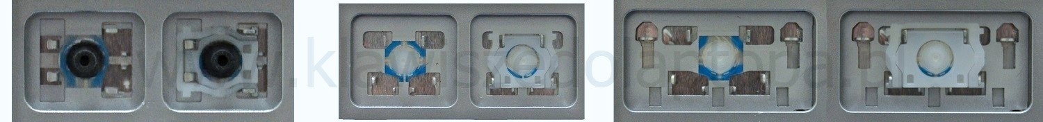 - U většiny klávesnic, které vypadají zvenku identicky, byly použity různé typy upevnění pod klávesami.